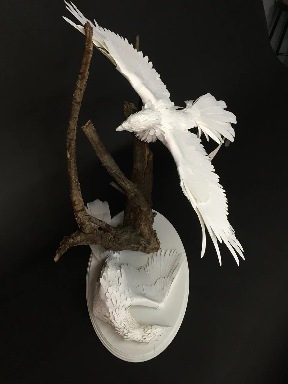 I was a postdoc with [the late biologist] Seymour Benzer and enjoy keeping up with what’s happening at Caltech. The July issue of the magazine struck me. A few years ago, my daughter made a paper sculpture of two birds (at right). I guess that I just wanted to share.—John A. Pollock (Postdoc ’84-’89)